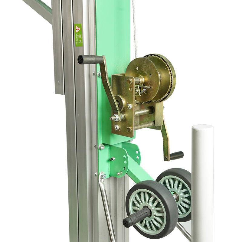 Fornisce una notevole capacità di carico di 150 kg per compiti pesanti. Il verricello manuale auto-bloccante integrale garantisce che il carico sia tenuto saldamente in posizione nel momento in cui si smette di girare,prevenire abbassamenti accidentali e garantire la sicurezza degli operatori.